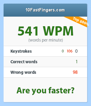 ReplyDeleteso when I found the site, I'd say I'd try it...and see how fast I can go..but when I saw the above results, I thought I could go faster..ayon..sumakit ng malala..ehek!
